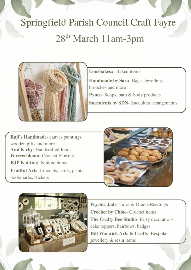 Springfield Parish Council Craft Fayre 28th March 11am -3pm